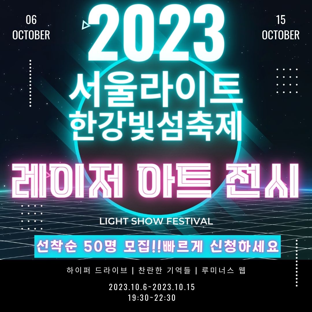 정원 50명만 선착순으로 사전예약하신 분만 관람이 가능한 한강 빛섬축제 레이저 아트 전시회를 아래에서 빠르게 알아보겠습니다.